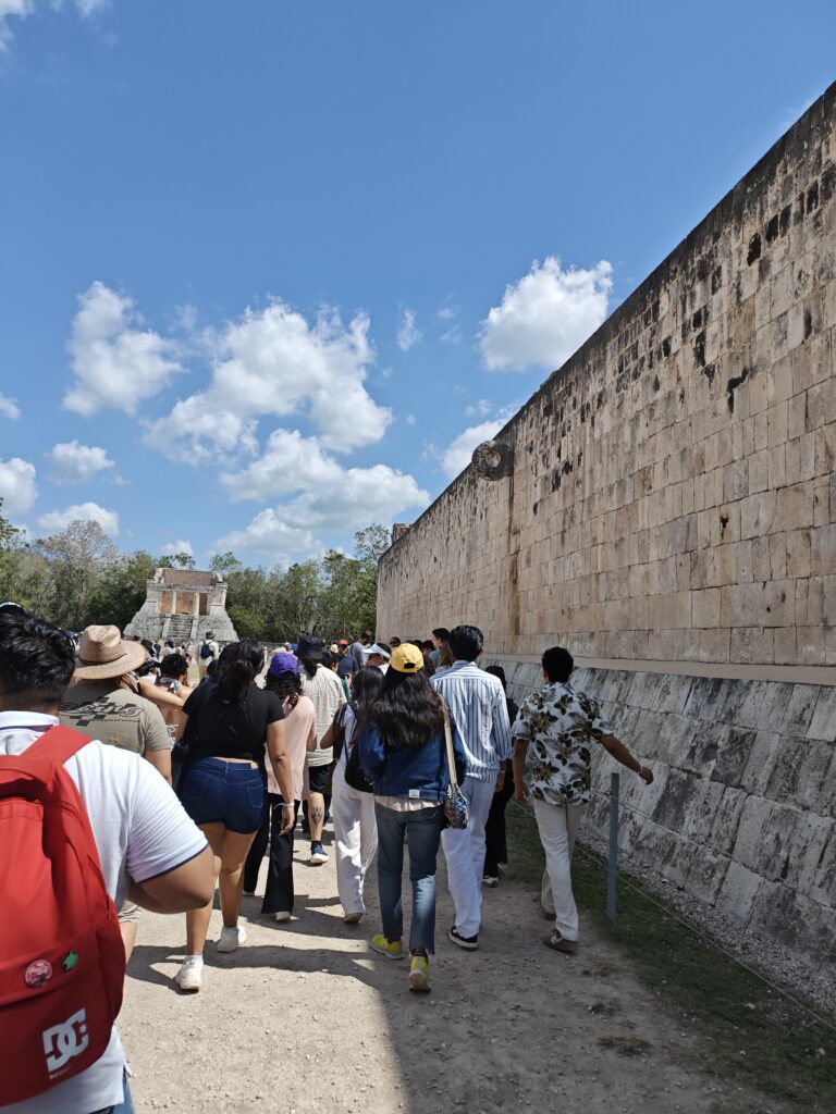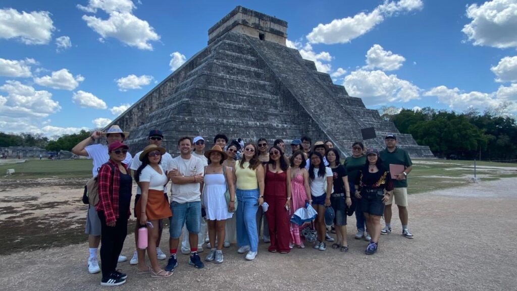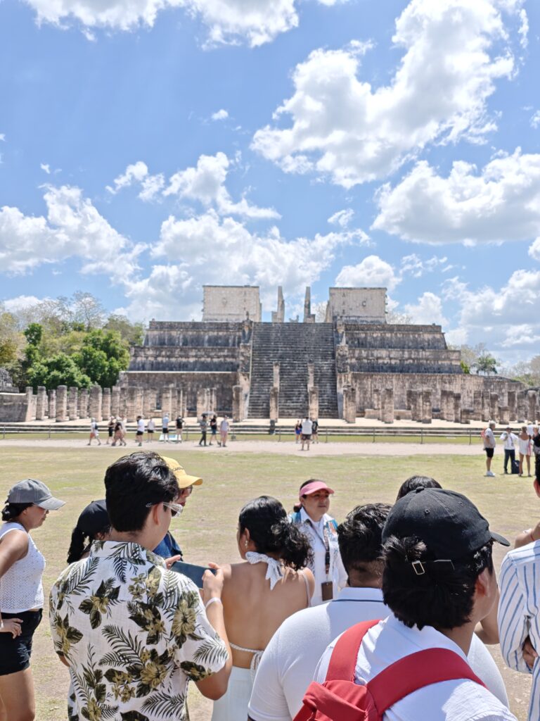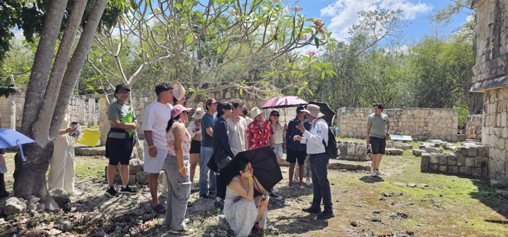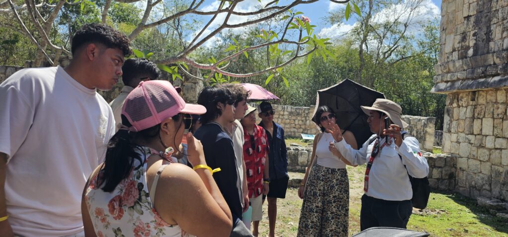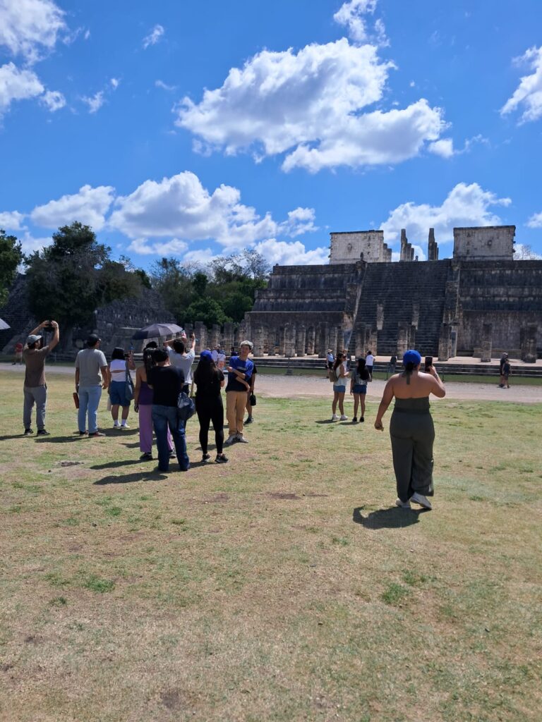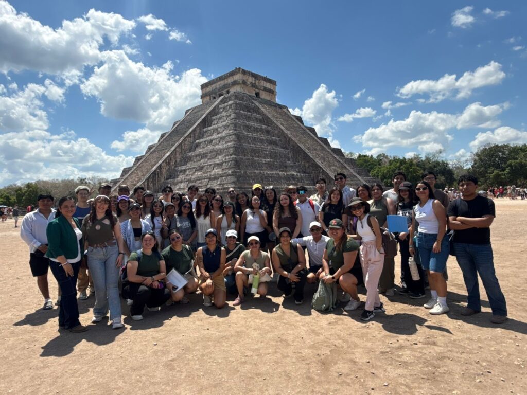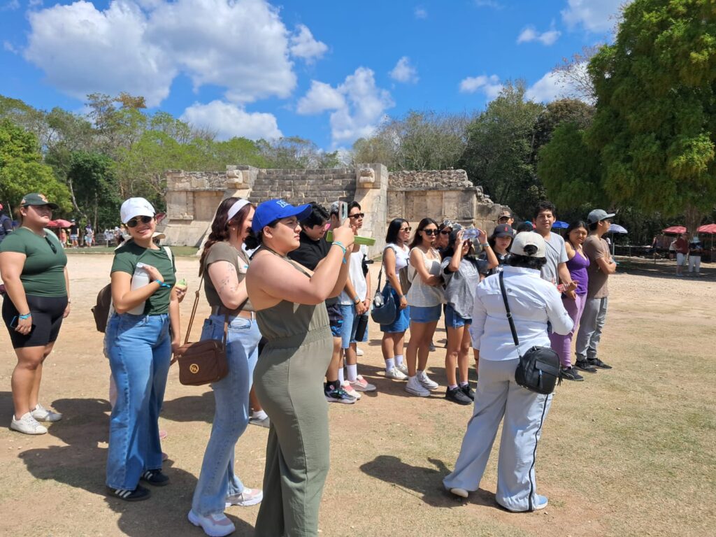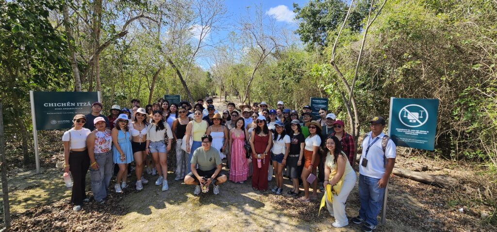 El recorrido incluyó la visita a la zona monumental de Chichén Itzá, donde admiramos la majestuosa Pirámide de Kukulkán, así como el área recientemente abierta de Chichén Inicial. Además, fuimos parte de un momento especial al acceder por primera vez al CATVI (Centro de Atención a Visitantes), siendo una de las primeras universidades en vivir esta nueva experiencia dentro de la zona arqueológica. Este encuentro permitió a nuestros estudiantes conectar el conocimiento académico con la riqueza cultural y patrimonial de nuestro país.
