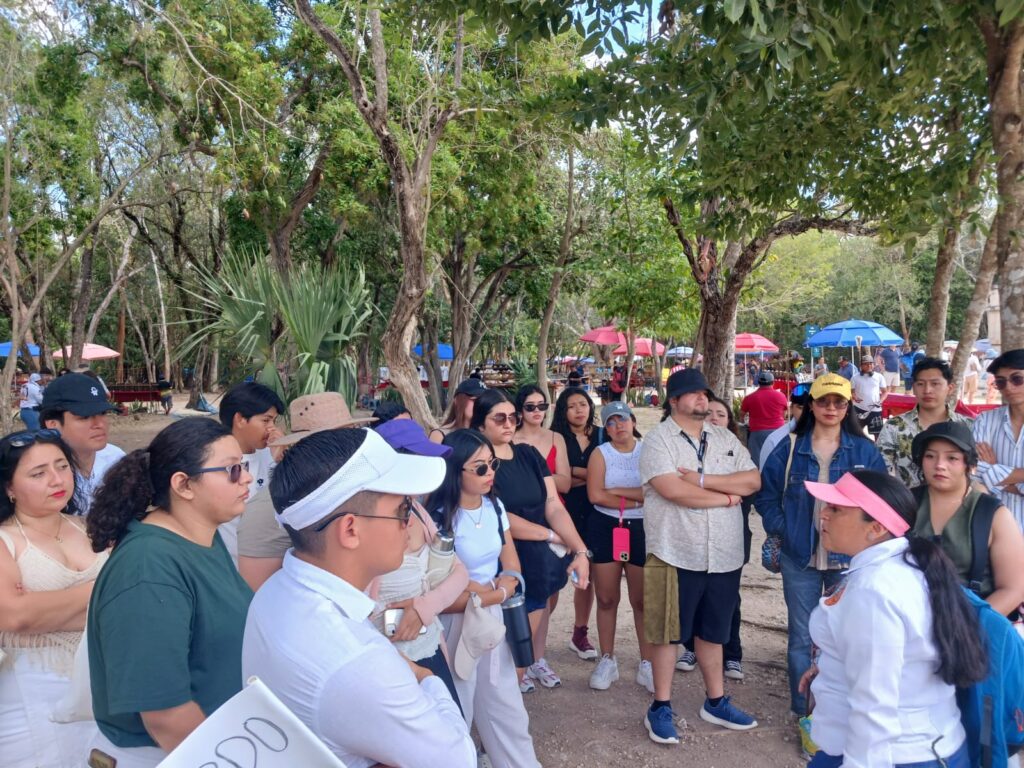 Para cerrar esta jornada, visitamos el Cenote Ecoturístico X-Cajum, donde los alumnos disfrutaron de la gastronomía local y de la experiencia única de nadar en un entorno natural, reforzando la importancia del turismo sostenible y vivencial.